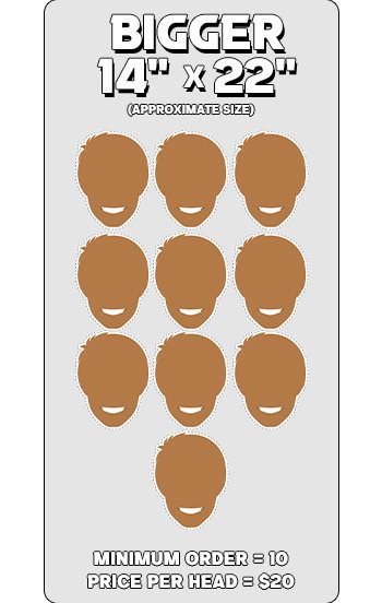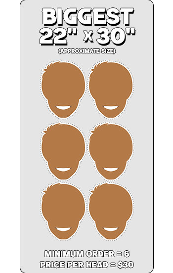 Our BigHeadz Custom Cutouts are available in 3 sizes – BIG – BIGGER – BIGGEST
